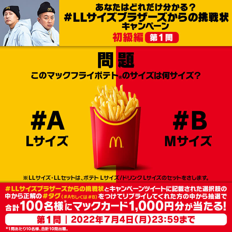 1,000円分のマックカードが抽選で10日間合計で100名様に当たる