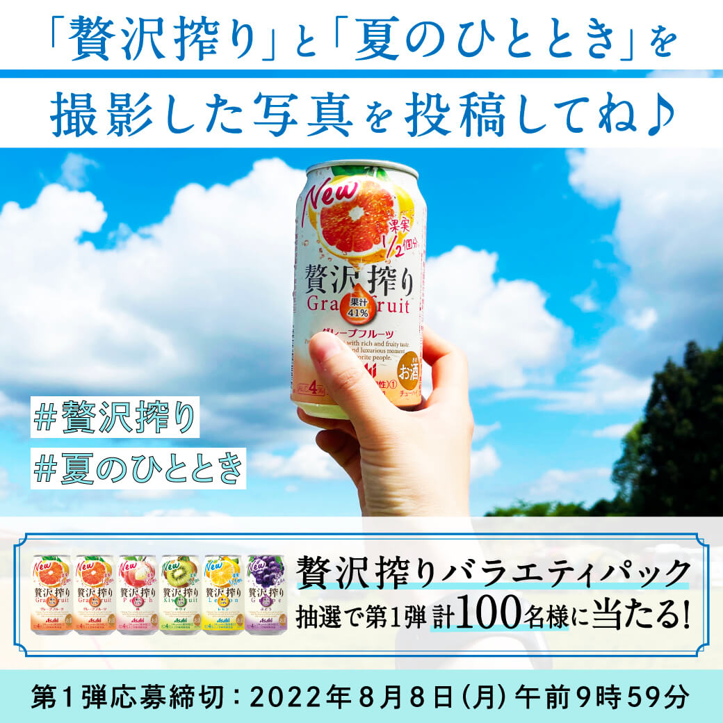 贅沢搾り 夏のひととき を付けて写真を投稿すれば完了です