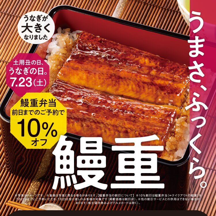#鰻重 と #鰻皿 のテイクアウト対象商品が7/22(金)までのご予約で10%オフ