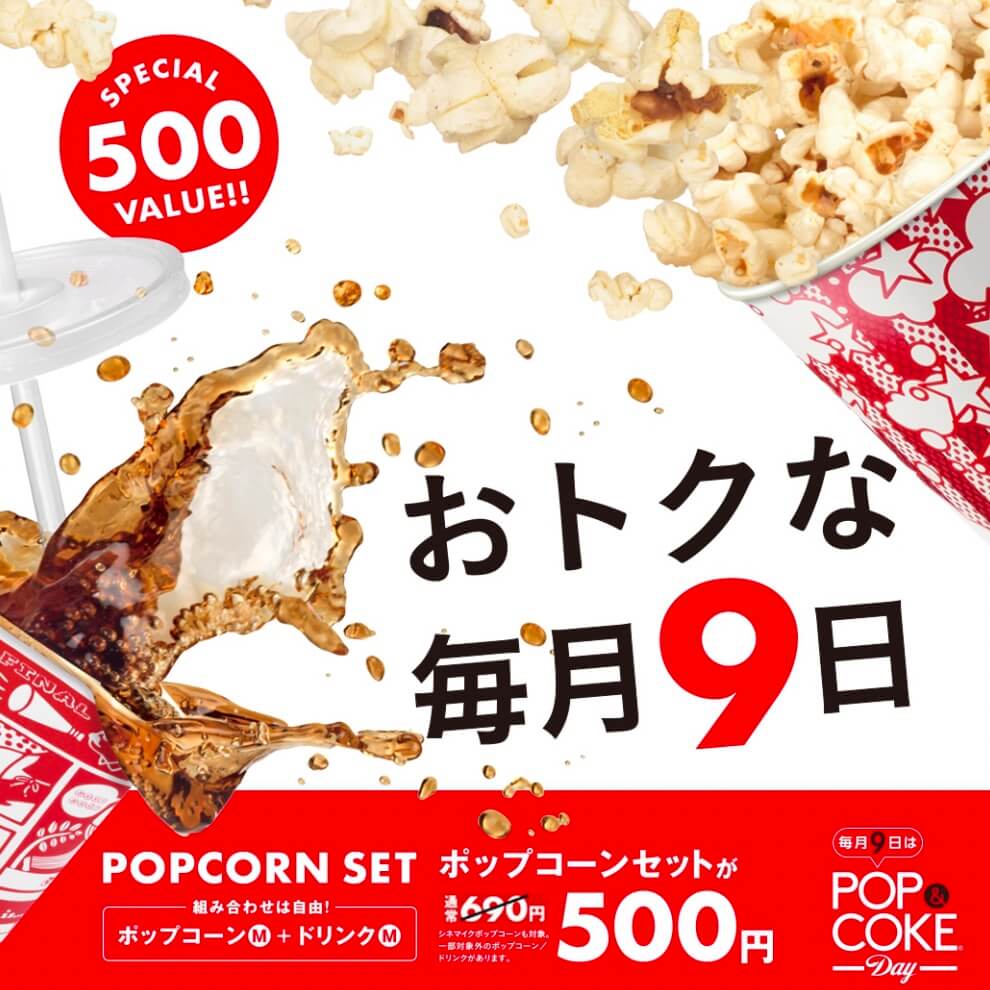 毎月9日は「POP & Coke Day」映画と一緒に、ポップコーンとドリンクを楽しもう!