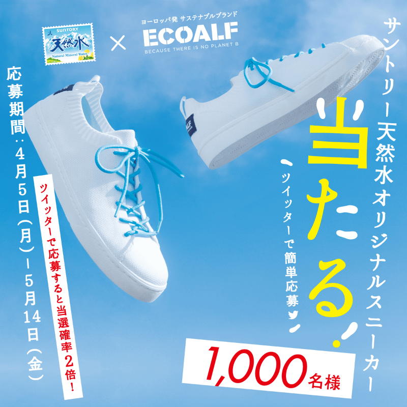 ヨーロッパ発サステナブランド エコアルフコラボした #サントリー天然水オリジナルスニーカー を1000名様にプレゼント