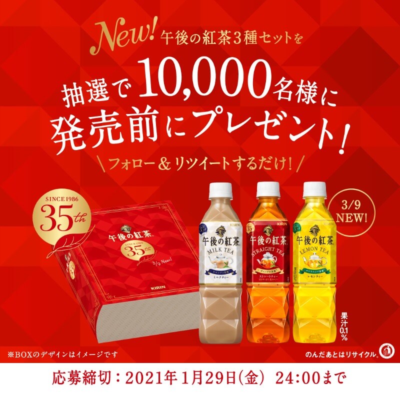 リニューアルする3種類の午後ティーをセットで発売前にプレゼント